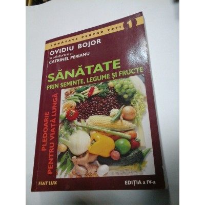 SANATATE PRIN SEMINTE, LEGUME SI FRUCTE - Pledoarie pentru viata lunga - OVIDIU BOJOR in colaborare cu CATRINEL PERIANU - Editia a-III-a - Fiat Lux 2005 - 223 pagini