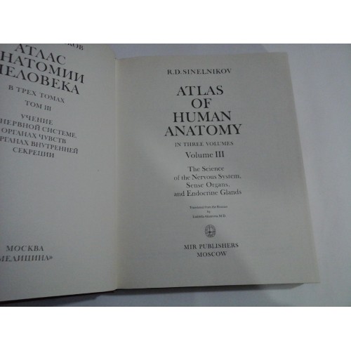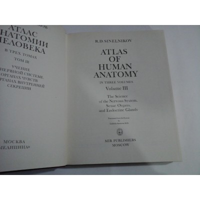 ATLAS OF HUMAN ANATOMY vol. III - The science of the NERVOUS SYSTEM, SENSE ORGANS and ENDOCRINE GLANDS - autor R. D. SINELNIKOV - Mir Publishers Moscow, 1990 - 400 pagini - varianta in limba engleza