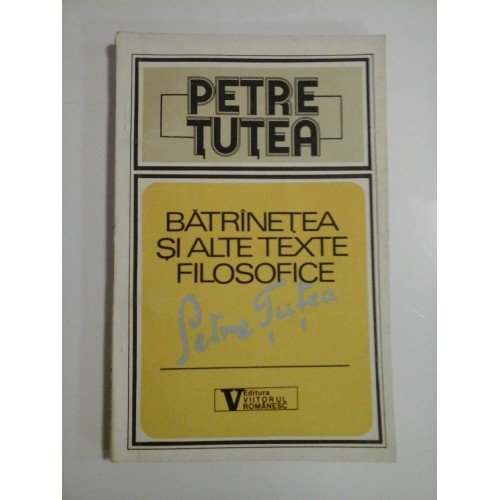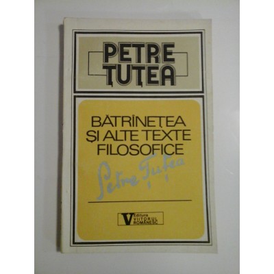BATRANETEA SI ALTE SCRIERI FILOSOFICE - PETRE TUTEA - Editura Viitorul Romanesc 1992- 141 pagini