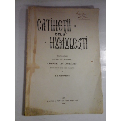 CATIHETII DELA HUMULESTI - I. I. MIRONESCU - Editura INSEMNARI IESENE, 1938 - 97 pag.