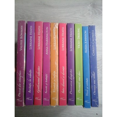 Alissa Johnson - Vicii si virtute ; Lorraine Heath - Intre diavol si dorinta / Provocarea dragostei / Invitatie la seductie / Vicontele si vulpita / Gentlemanul seducator ; Anna Harrington - Secrete si tentatii ; Valerie Bowman - Ducesa din intamplare ; Vichy Dreiling - Dolintele unui duce ; Christi Caldwell - Onoarea unui talhar