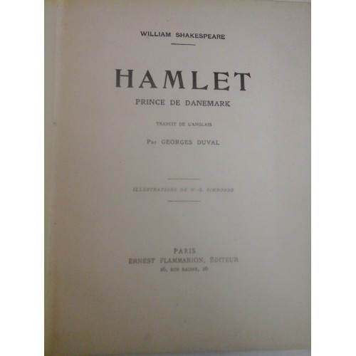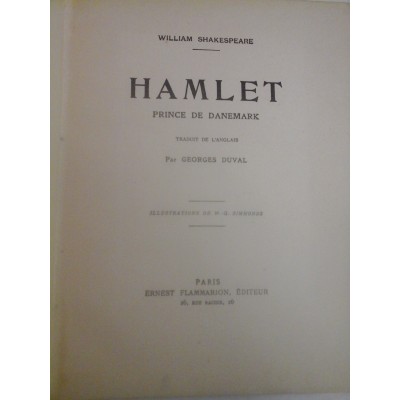 HAMLET Prince de Danemark - WILLIAM SHAKESPEARE - Traduit G. DUVAL - illusttrationd de w.g. simmomds - Paris Ernest Flammarion edtitor - 151 pag.