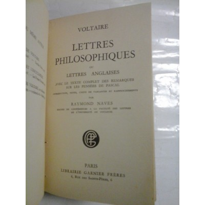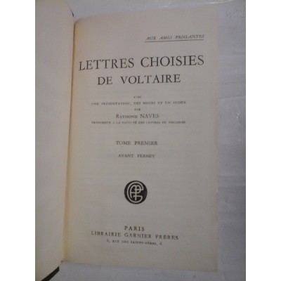 LETTRES  CHOISIES  DE  VOLTAIRE  tome premier and tome deuxieme;  LETTRES  PHILOSOPHIQUES  VOLTAIRE  -  Paris, 1946 ;1939  -  I/II/III = 379/317/304 pagini (toate cele 3 carti sunt cuprinse intr-un singur volum)