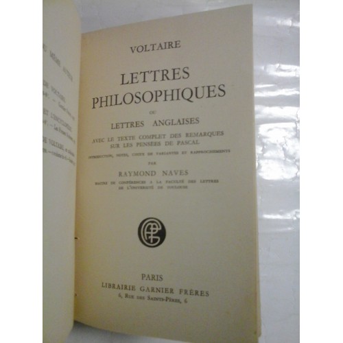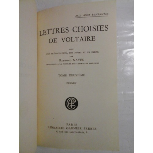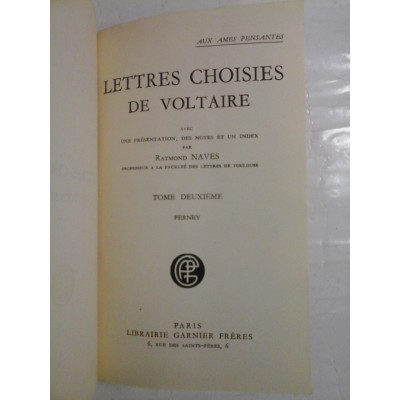 LETTRES  CHOISIES  DE  VOLTAIRE  tome premier and tome deuxieme;  LETTRES  PHILOSOPHIQUES  VOLTAIRE  -  Paris, 1946 ;1939