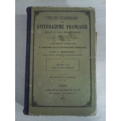TEXTES  CLASSIQUES  DE  LA  LITTERATURE  FRANCAISE extraits des grands ecrivains francais  -  J. DEMOGEOT Paris, 1884  -  562 pag.
