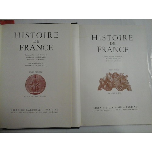 HISTOIRE DE FRANCE Tome premier Des origines a 1715 * Tome second De 1715 a 1962 - Paris - 519/535 pag.