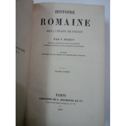 HISTOIRE ROMAINE jusq”a l”invasion des barbares - V. DURUY - Librairie de L. HACHETTE 1863 - 587 pagini