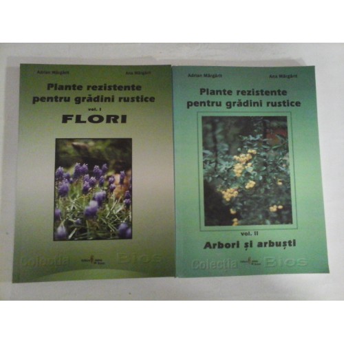 Plante rezistente pentru gradini rustice Vol.I FLORI * Vol.II ARBORI SI ARBUSTI - Adrian Margarit * Ana Margarit - Targoviste, 2004 - 163/127 pag.