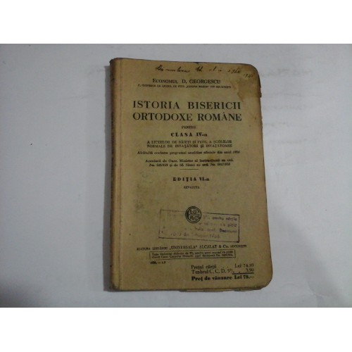 ISTORIA BISERICII ORTODOXE ROMANE - EDITIA VI-A - ECONOMUL D. GEORGEESCU - Editura Librariei Universala, 1938 - 202 pag.