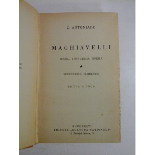 MACHIAVELLI - OMUL. TIMPURILE. OPERA - C. ANTONIADE - Editu..