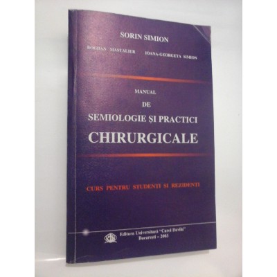 MANUAL DE SEMIOLOGIE SI PRACTICI CHIRURGICALE Curs pentru studenti si rezidenti - Sorin SIMION * Bogdan MASTALIER * Ioana-Georgeta SIMION - Editura Carol Davila Bucuresti, 2003 - 369 pag.