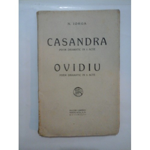 CASANDRA * OVIDIU  Teatru  -  N. IORGA  -  Editura Socec  -  162 pag.
