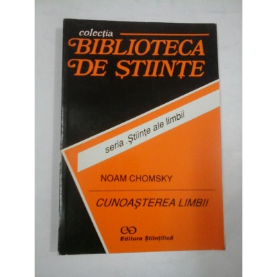 CUNOASTEREA LIMBII - NOAM CHOMSKY - Traducere de A.Cornilescu,I.Baciu si T.D.Coliban - Postfata de A.Cornilescu - Traducerea notelor de I.Dimitriu - Editura Stiintifica - 1996 - 367 pagini