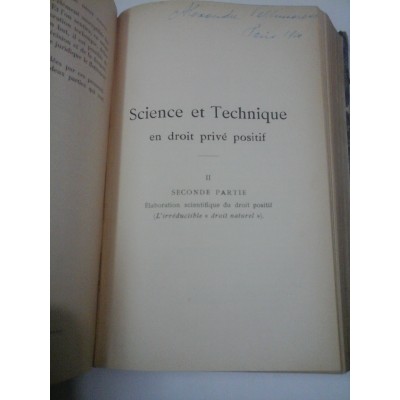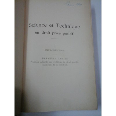 Science et Tehnique en droit prive positif - Francois GENY - Librairie de la Societe du Recueil Sirey, Paris, 1914, 1915 - 1 Partie=212 pag;