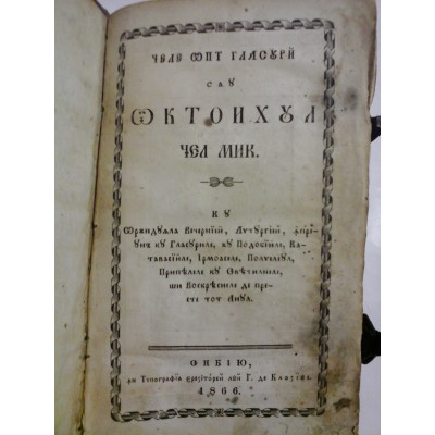 Cele opt glasuri sau OCTOIHUL cel mic (Editie in limba romana cu caractere chirilice) - Sibiu 1866 -