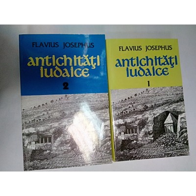 ANTICHITATI IUDAICE - autor FLAVIUS JOSEPHUS - 2 volume -Editura Hasefer 2000 si 2001 - 597 +652 pagini -vol.1 - cartile I-X - DE LA FACEREA LUMII PANA LA CAPTIVITATEA BABILONIANA -vol. 2 -cartile XI-XX -DE LA REFACEREA TEMPLULUI PANA LA RASCOALA IMPOTRIVA LUI NERO