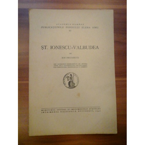 ST. IONESCU-VALBUDEA (ABUM) - ACADEMIA ROMANA PUBLICATIUNILE FONDULUI ELENA SIMU VI - ION FRUNZETTI