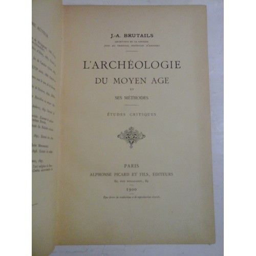 L'ARCHEOLOGIE DU MOYEN AGE ET SES METHODES * Etudes critiques (1900) - J.-A. BRUTAILS - Paris, 19000 - 234 pag.